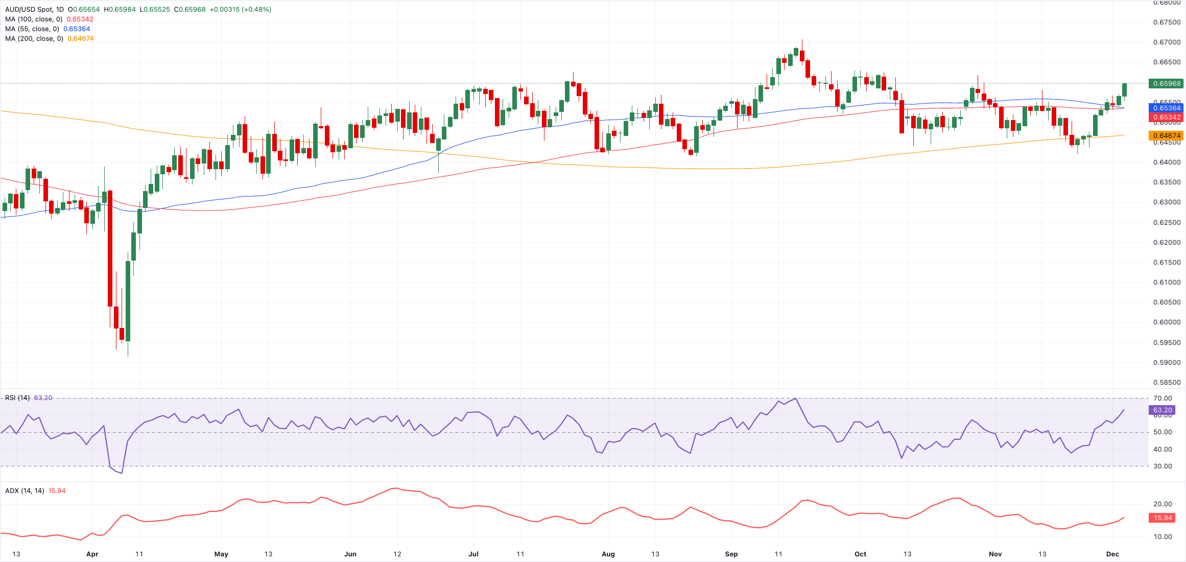 Avustralya Doları (AUD), salı günü kaydettiği makul kazançlarına kaldığı yerden devam ederek, AUD/USD paritesini çarşamba günü ekim sonundan bu yana ilk kez 0,6600 ana engeline sadece birkaç pip uzaklığa yükseltti.