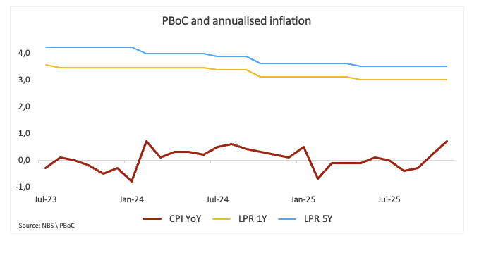 Ancak Çin Merkez Bankası (PBoC) acele etmiyor. Kredi Referans Faiz Oranları (LPR) %3,00 (bir yıl) ve %3,50 (beş yıl) seviyelerinde sabit kalıyor. Yani Çin hala Aussie'ye yardımcı oluyor, ama havai fişekler patlatmıyor.