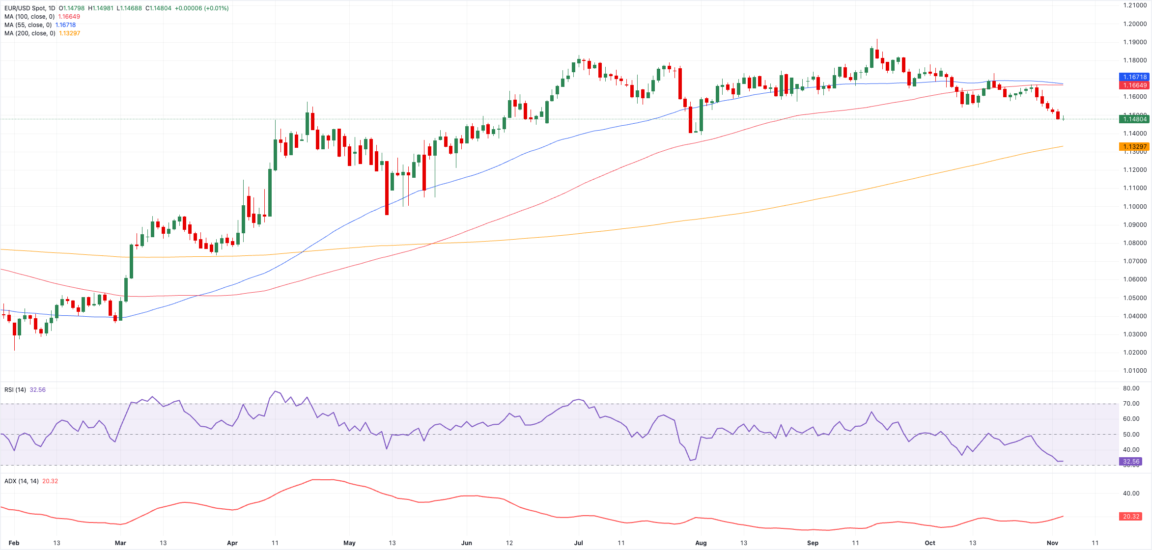 EUR/USD paritesi çarşamba günü kayıp serisini uzatarak 1,1470 bölgesine geri kaydı ve bu, ağustos ayından bu yana en düşük seviyesidir; paritenin son düşüş eğilimi duracak gibi görünmüyor.