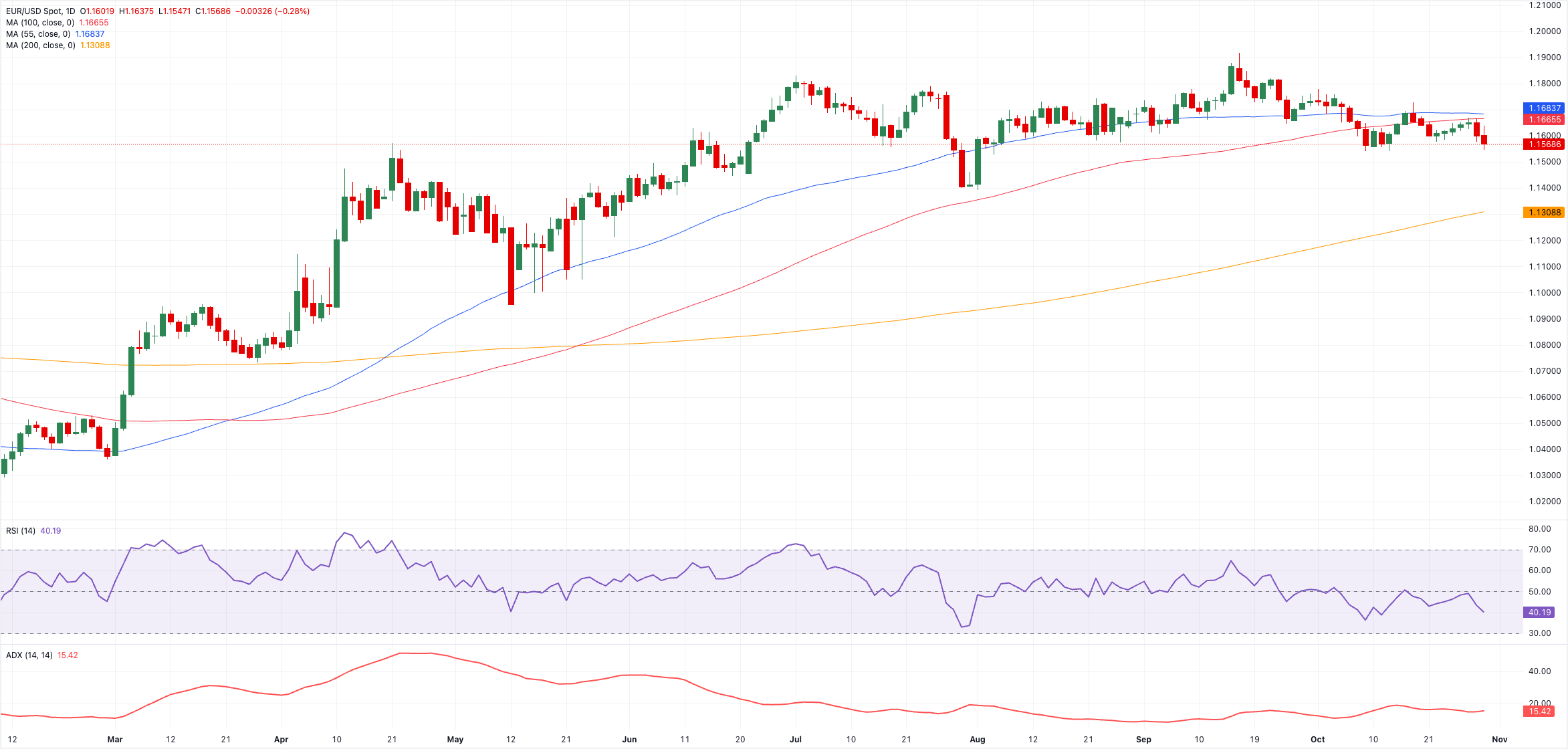 EUR/USD, çarşamba günkü Federal Açık Piyasa Komitesi (FOMC) sonrası düşüşünü uzatarak, 1,1550–1,1540 aralığında ağustos ayının başlarından bu yana görülmeyen seviyelere geriledi.