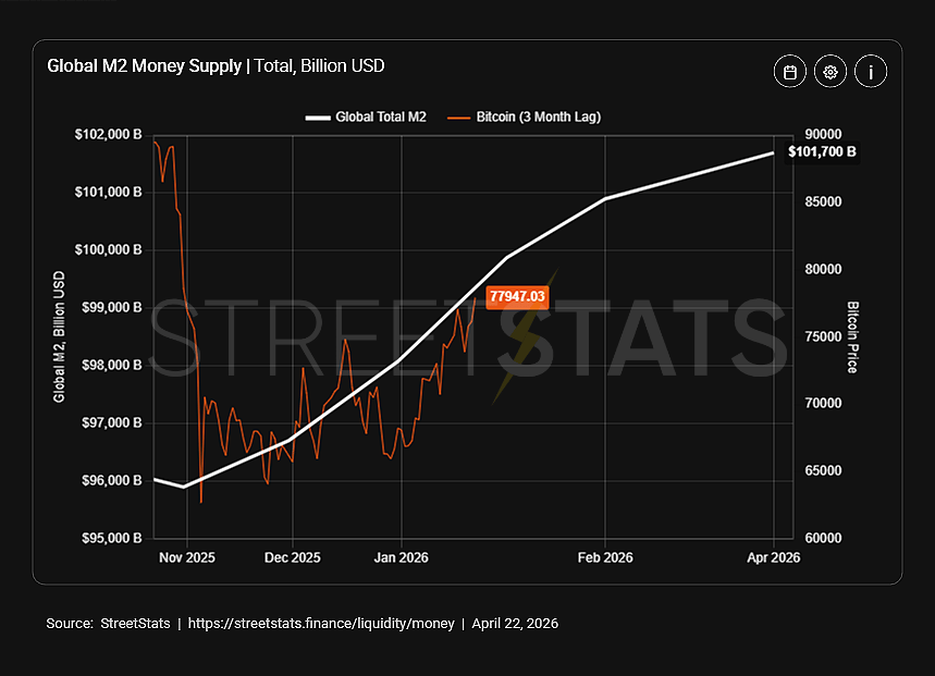 Daha geniş likidite dinamikleri de Bitcoin’in direncinde önemli rol oynadı, çünkü BTC hâlâ yüksek likiditeye dayalı bir varlık olarak kalıyor. Küresel M2 para arzı son altı ayda artış gösterdi. Tarihsel olarak, Bitcoin küresel likidite artışıyla gecikmeli pozitif korelasyon sergilemiştir; çünkü fazla sermaye genellikle parasal genişleme dönemlerinde riskli varlıklara akar. Küresel likiditedeki bu artış, Bitcoin’in son gücünü destekleyen bir görüşü güçlendiriyor.