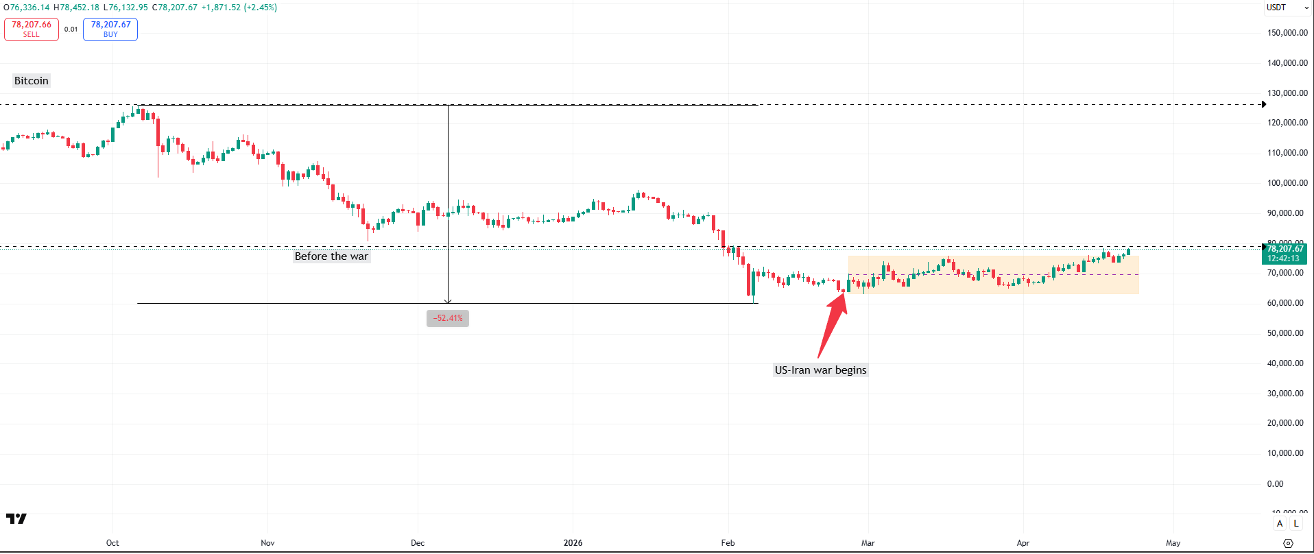 Adil olmak gerekirse, ABD-İran savaşı başlamadan önce Bitcoin, 28 Şubat’ta başlayan savaş öncesinde tüm zamanların en yüksek seviyesinden %50’den fazla düzeltme yapmıştı.