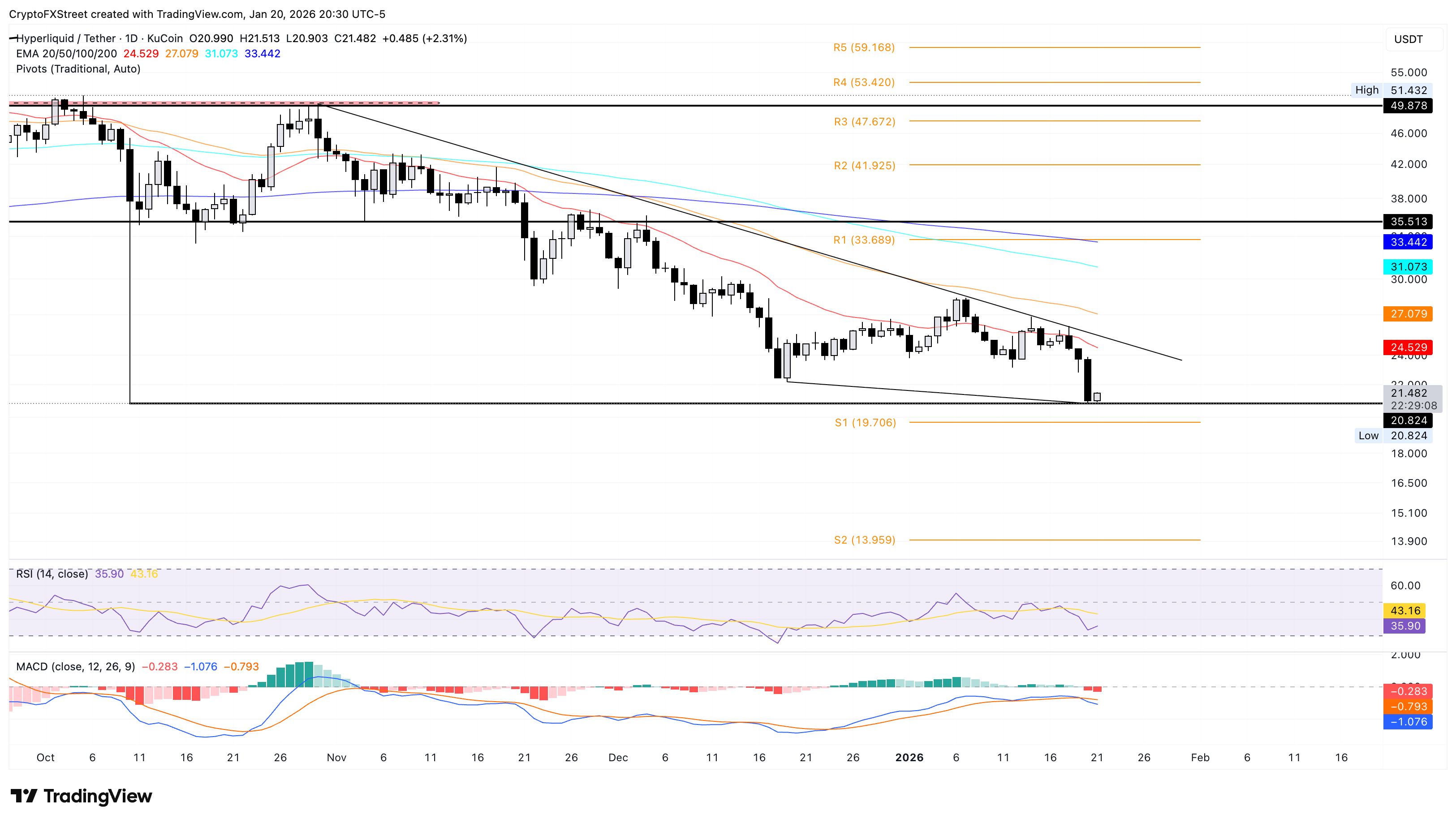 Eğer HYPE, 20,82$'daki 10 Ekim düşük seviyesinin altında günlük bir kapanış yaparsa, 19,70$'daki S1 Pivot Noktasını test edebilir ve daha fazla aşağı yönlü riskin kapısını açabilir.