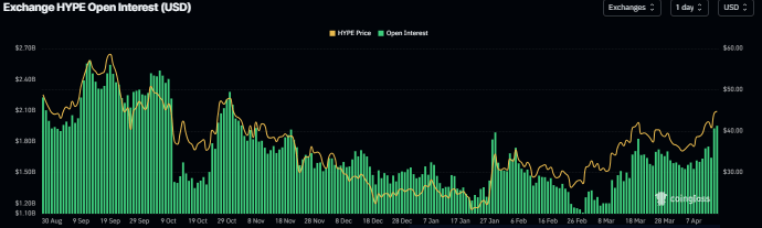Türev tarafında, CoinGlass verileri HYPE vadeli işlemlerindeki Açık Pozisyon (OI) tutarının salı günü 1,95 milyar dolara ulaştığını, 3 Nisan'daki 1,5 milyar dolardan yükseldiğini ve istikrarlı bir şekilde artarak kasım ayı başlarındaki en yüksek seviyeye ulaştığını gösteriyor. Artan OI, piyasaya yeni veya ek para girişi ve yeni alımlar olduğunu gösterir; bu da HYPE fiyatında bir ralliyi tetikleyebilir.