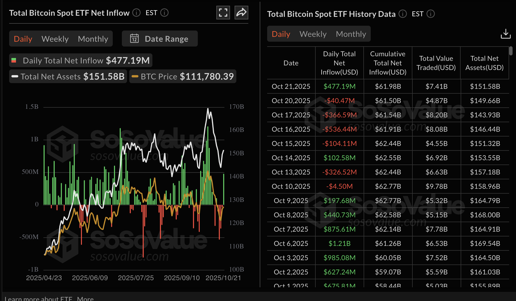 Bitcoin ETF istatistikleri | Kaynak: SoSoValue