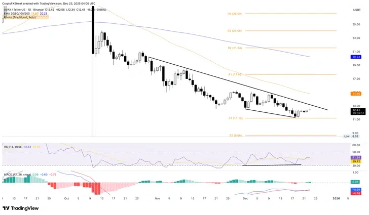 Avalanche (AVAX), salı günü basın zamanında 12$'ın üzerinde işlem görüyor ve bir önceki günde %2'lik bir artış kaydetti. Katman-1 blok zinciri tokeni, Aralık ayında aktif adreslerin aylık rekor yüksek seviyeye ulaşmasıyla toparlanma belirtileri gösteriyor ve büyük cüzdan yatırımcıları, genellikle balina olarak adlandırılanlar, türev piyasasındaki yenilenen risk alma hissini destekliyor. Teknik olarak, AVAX, düşen bir kama formasyonu içinde yukarı yönlü hareketler sergiliyor ve boğalar potansiyel bir kırılma rallisini hedefliyor.