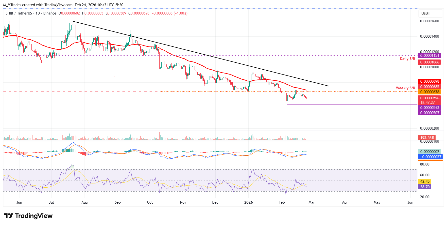 Dogecoin gibi, SHIB'nin RSI'si de düşüş momentumunun güç kazandığını gösteriyor, ayrıca MACD de düşüş kesişimine geçmek üzere, bu da olumsuz görünümü daha da destekliyor.