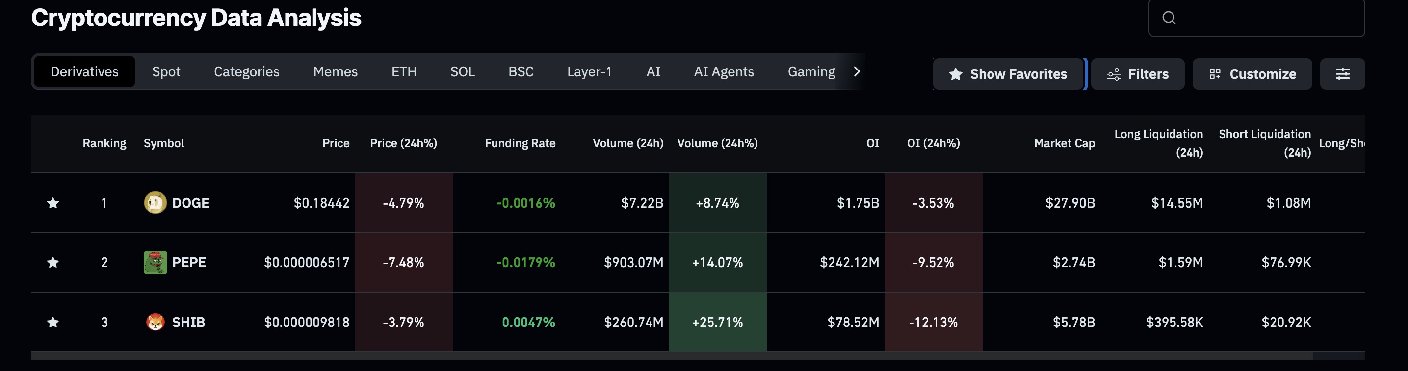 Meme coin'lerin türev verileri. Kaynak: CoinGlass