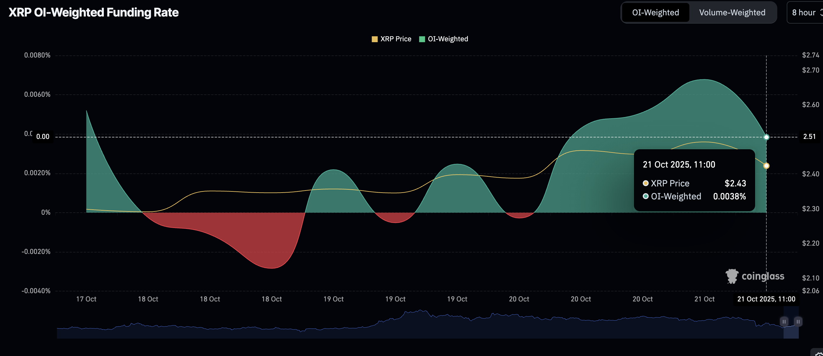 XRP OI ağırlıklı finansman oranı | Kaynak: CoinGlass