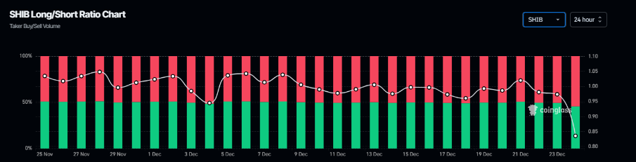 Ayrıca, Coinglass’ın SHIB için uzun-kısa oranı çarşamba günü 0,83 olarak kaydedildi, bu da bir ay içindeki en yüksek seviye. Birin altındaki oran, piyasada aşağı yönlü bir eğilim olduğunu gösteriyor, çünkü daha fazla trader memecoin fiyatının düşmesi üzerine bahis yapıyor.