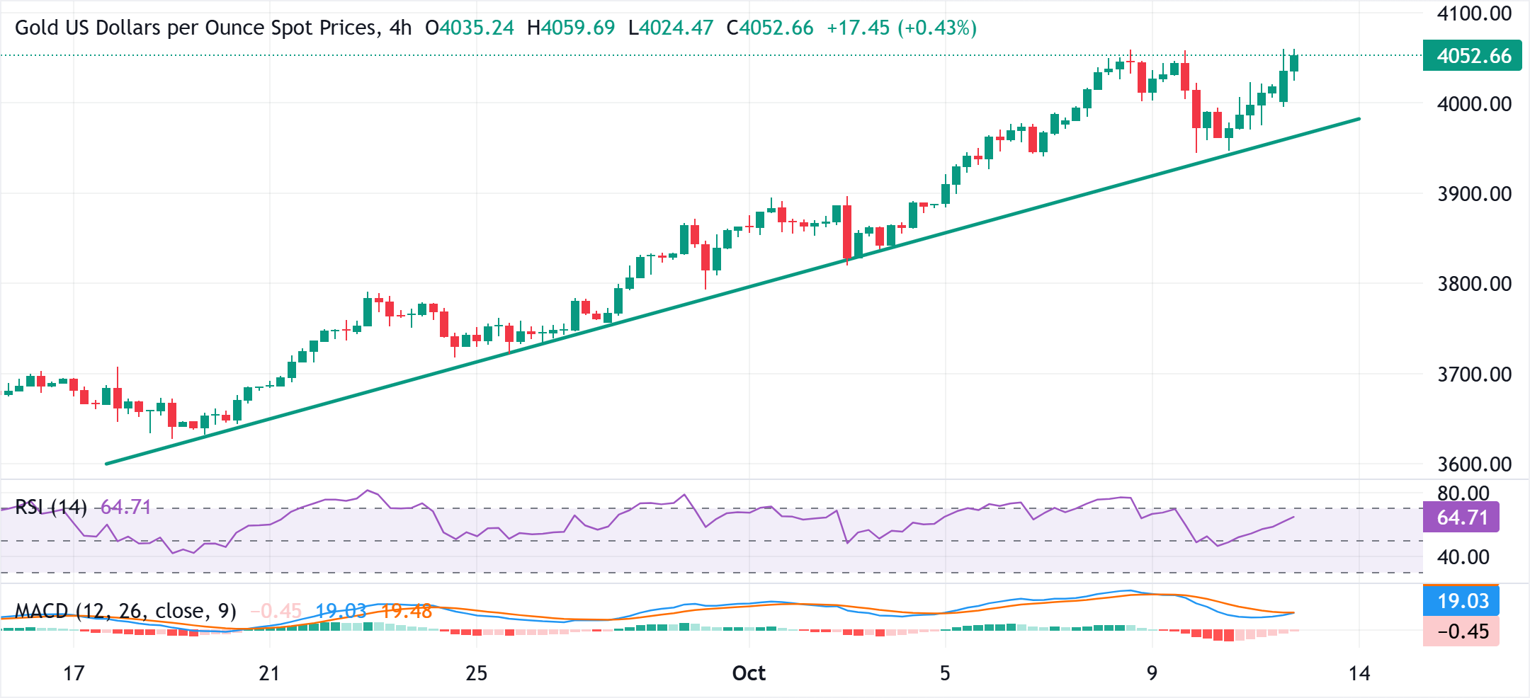Altın, Asya seansı boyunca yeni tarihi zirvelere tırmanmaya devam ediyor ve son saatte destekleyici bir temel zemin eşliğinde 4.078$ bölgesine yükseliyor. Yatırımcılar, uzun süren ABD hükümeti kapanması ve artan jeopolitik gerginlikler nedeniyle ekonomik belirsizlikler konusunda endişeli kalıyor.
