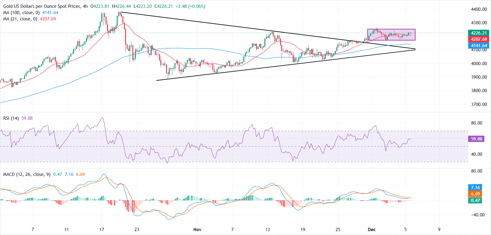 Teknik analiz: XAU/USD'nin ivme kazanması için 4.250$'nın üzerinde bir kırılma gerekiyor