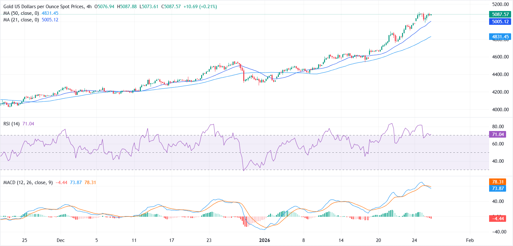 Bu satırların yazıldığı sırada, XAU/USD 5.087 $ civarında işlem görüyor ve 4.990 $ civarındaki intraday düşük seviyesinden sıçrama yapıyor.