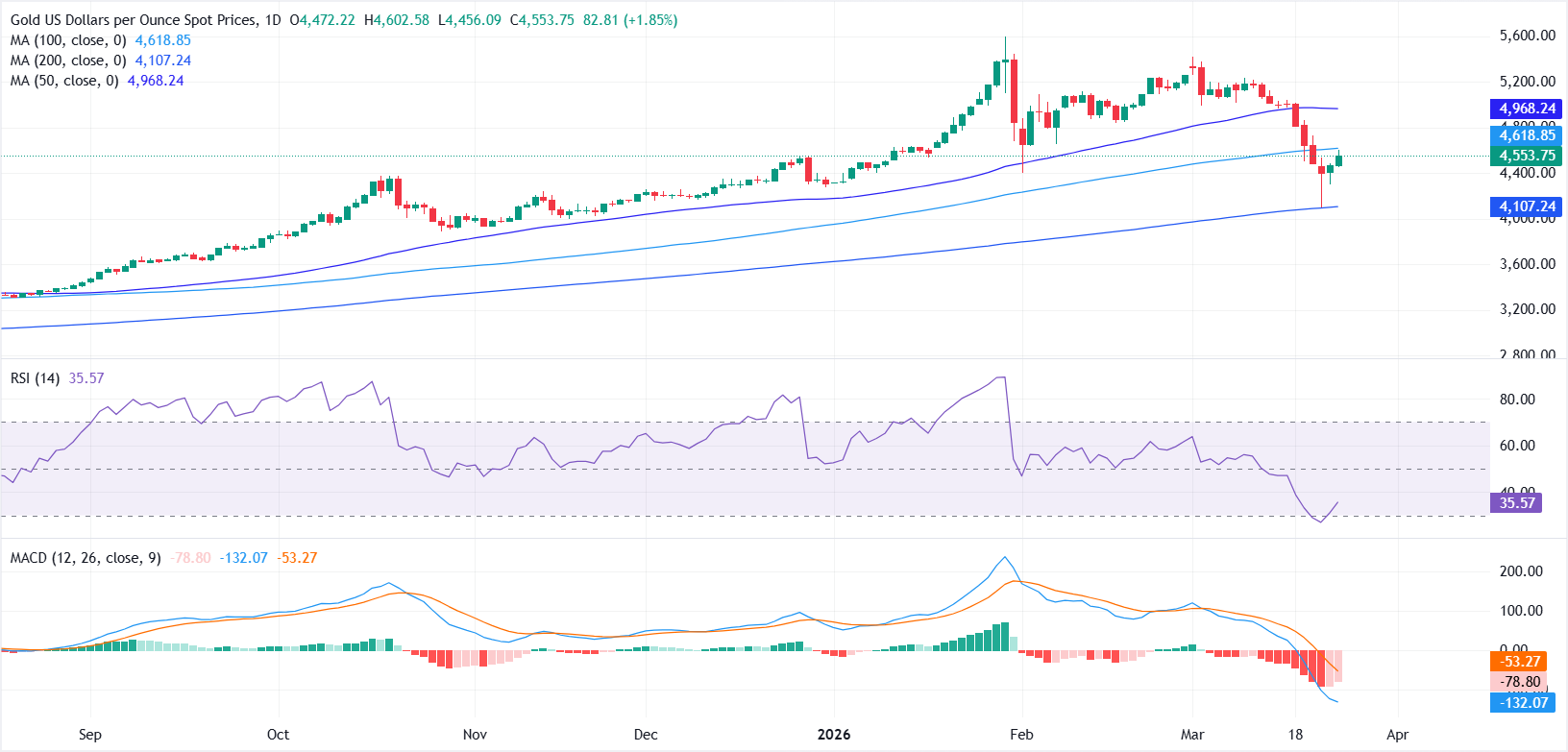 Teknik analiz: XAU/USD aşırı satım sonrası sıçramayla 100 günlük SMA direncini test ediyor