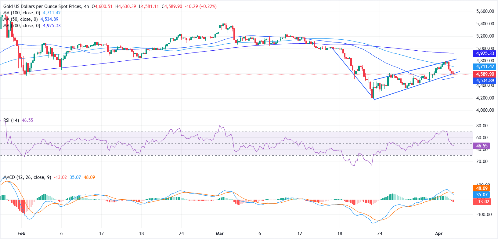 Bu satırların yazıldığı sırada, XAU/USD günlük bazda yaklaşık %3,50 düşüşle 4.590$ civarında işlem görüyor ve 4.800$ civarındaki iki haftalık zirveden geri çekiliyor.