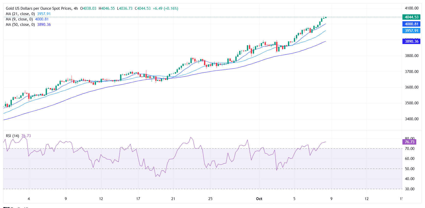 Bu satırların yazıldığı sırada, XAU/USD 4.039$ civarında işlem görüyor ve gün içinde 4.049$ ile tüm zamanların zirvesine ulaşmasının ardından tarihi bölgenin altında dalgalanıyor. Fiyatlar bu hafta şimdiye kadar %4'ten fazla artış gösterdi.