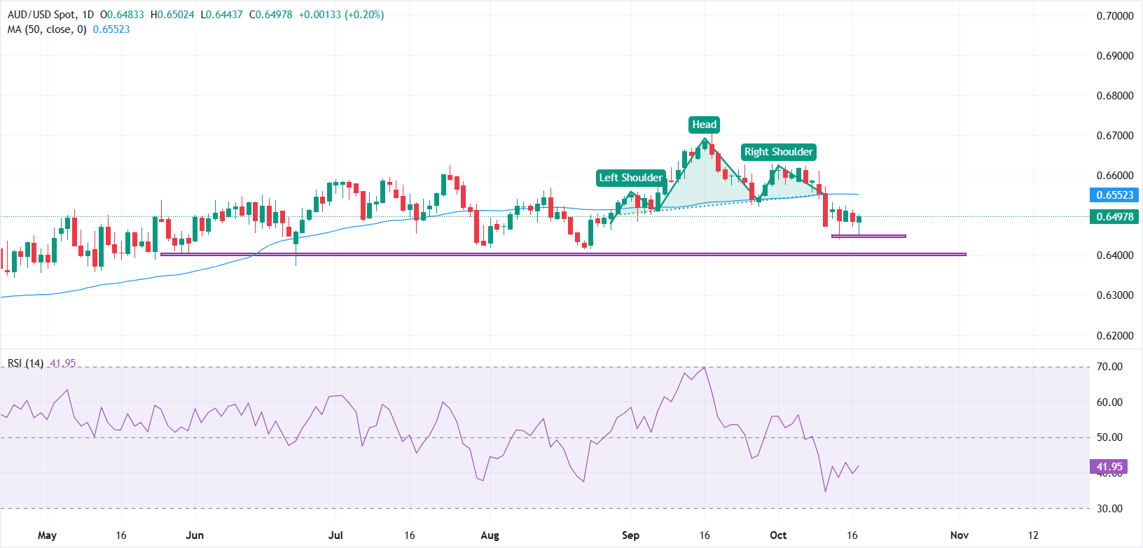 Teknik açıdan, AUD/USD geçen hafta bir Baş ve Omuzlar formasyonunun boyun çizgisinin altına düştü ve bu durum düşüş devam formasyonunu teyit etti. O zamandan beri, parite 0,6450 ile 0,6520 arasında nispeten dar bir aralıkta işlem görüyor ve bu da kırılmanın ardından konsolidasyonu yansıtıyor.