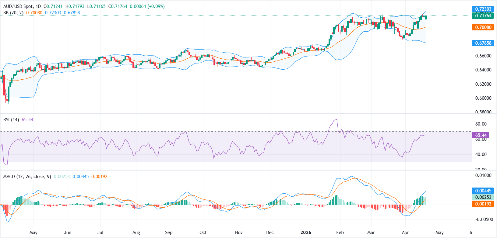 Yukarı yönde, acil direnç 0,7230 seviyesindeki üst Bollinger bandıyla uyumlu olup, bu seviyenin üzerinde günlük kapanış rallinin devamı için kapıyı açacaktır.