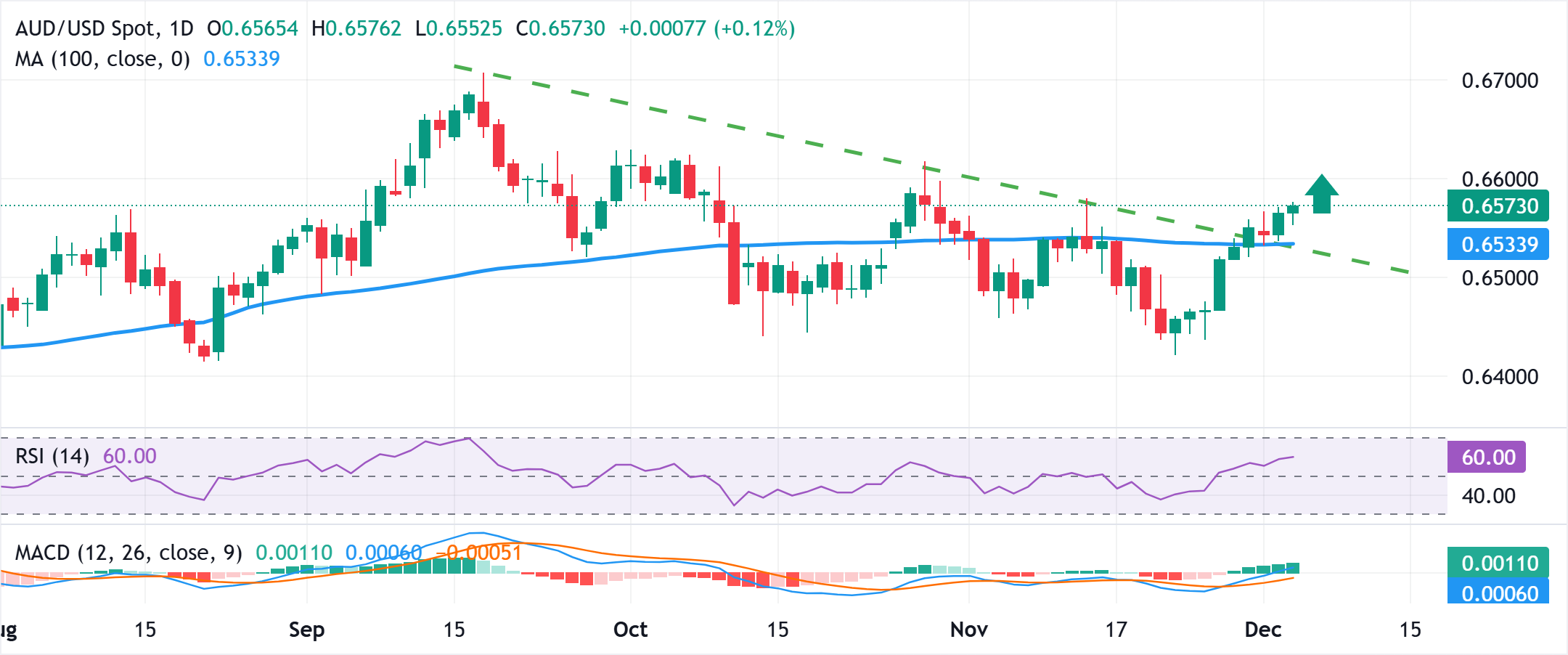 - Aralık ayında Fed faiz indirimi beklentilerinin artması, USD'yi zayıflatmaya devam ediyor ve AUD/USD'yi destekliyor.