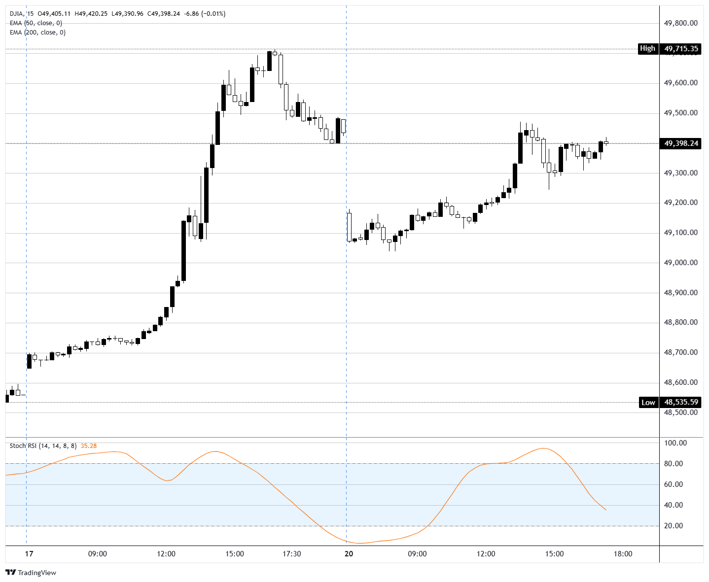Dow Jones 15 dakikalık grafik