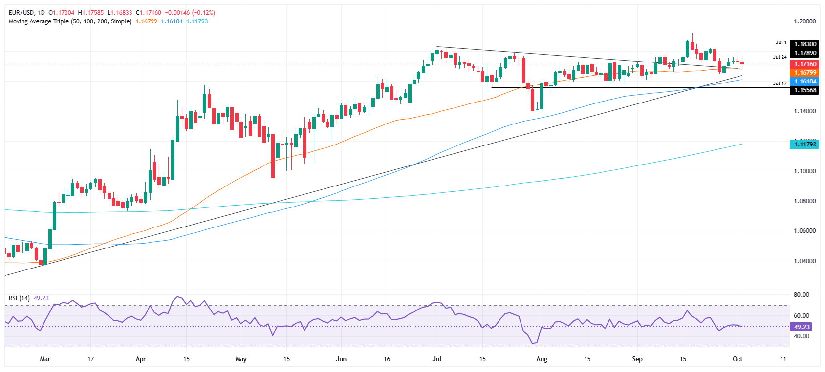 Teknik görünüm: EUR/USD, yeni bir katalizör beklerken 1,1710 civarında istikrar kazanıyor