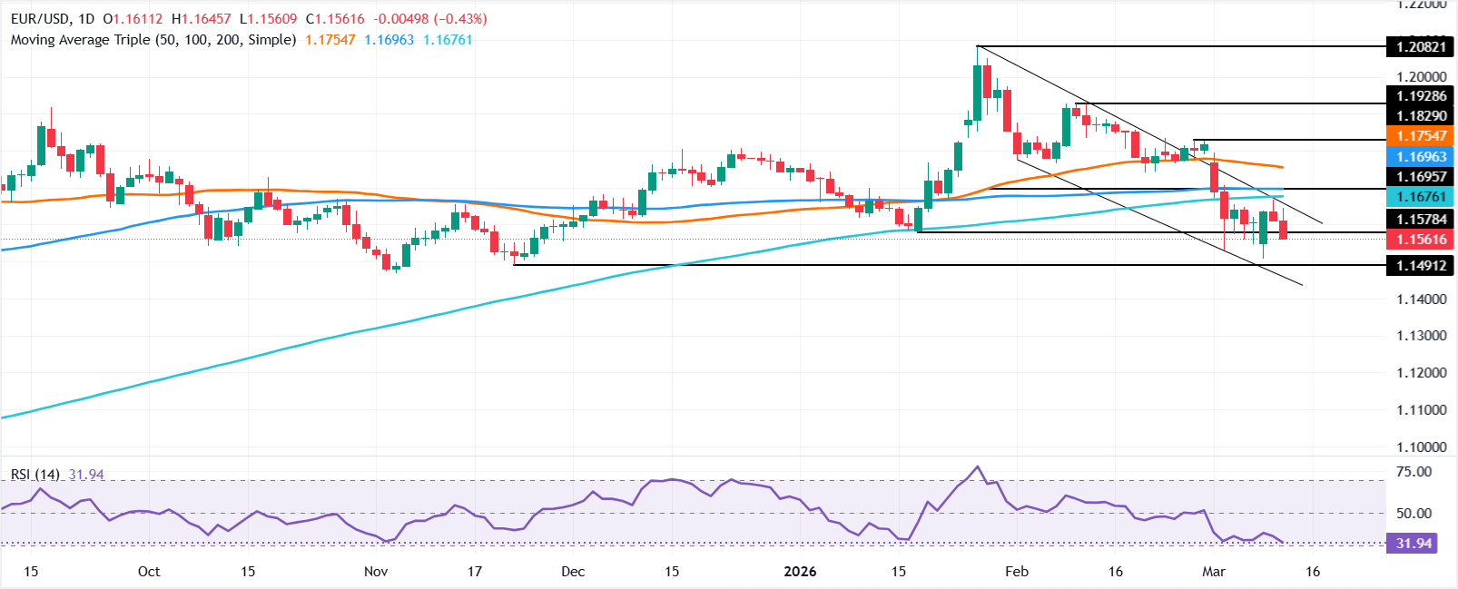 Bu satırların yazıldığı sırada, EUR/USD işlemi 1,1672'deki 200 günlük Basit Hareketli Ortalama'nın (SMA) altında işlem görüyor ve bu da uzun vadede paritenin düşüşe geçtiğini gösteriyor; 3 Mart'ta 200 günlük SMA'nın üzerine çıktıktan sonra.