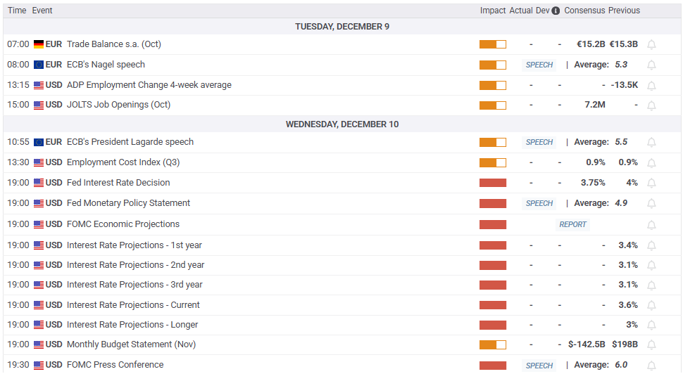 Salı günü, ABD ekonomik takviminde ADP İstihdam Değişikliği 4 haftalık ortalaması ve Ekim ayı için JOLTS Açık İş Pozisyonları verileri yer alacak. Euro Bölgesi'nde ise yatırımcılar Almanya'nın Aralık ayı Ticaret Dengesi ve ECB'nin Joachim Nagel konuşmasını takip edecek.