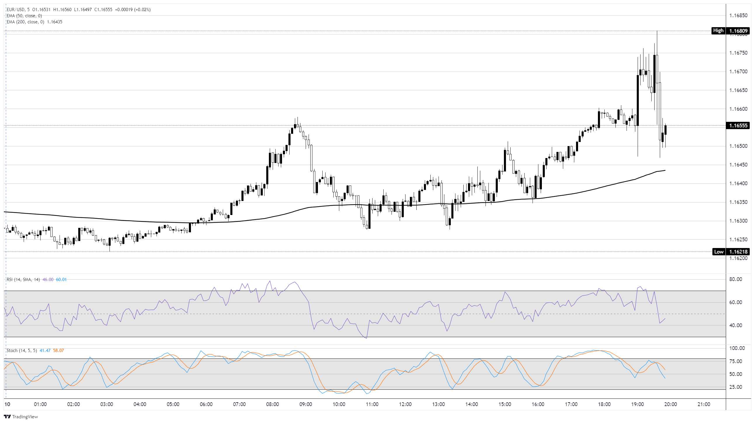 - EUR/USD, Fed'in geniş çapta beklenen faiz indirimini açıklamasının ardından 1,1670 civarında intraday en yüksek seviyelere sıçradı.