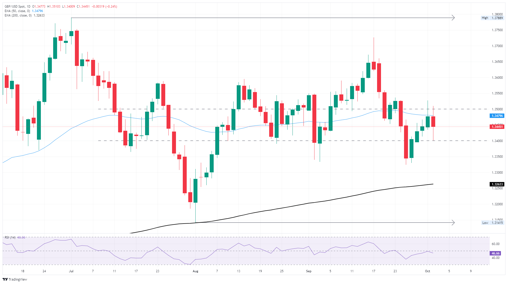 GBP/USD, Perşembe günü dört oturumluk kazanç serisini sonlandırarak 1.3500 tutamacındaki teknik reddin ardından geri çekildi. Cable, 1.3400 ile 1.3500 arasında orta vadeli konsolidasyona geri dönüyor ve fiyat hareketi 50 günlük Üstel Hareketli Ortalama'nın hemen altında inatla tutunuyor. Piyasalar, yatırımcıların ABD hükümetinin federal kapanmasının ne kadar süreceğini ve ekonomik etkilerinin ne olabileceğini değerlendirmesiyle momentumda uzatılmış bir duraklama yaşıyor.
