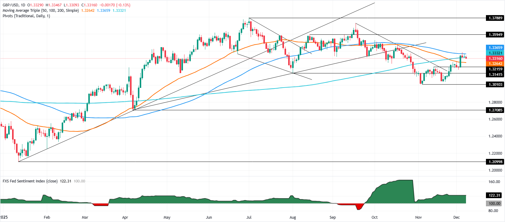 GBP/USD, piyasaların temkinli hale gelmesiyle 1,3300 seviyesine doğru geriliyor