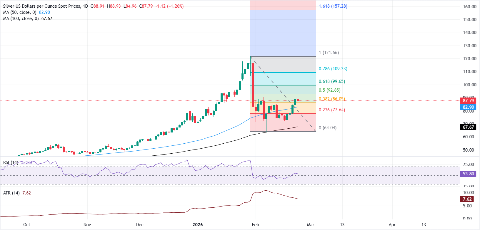 Bu satırların yazıldığı sırada, XAG/USD 87,80$ civarında işlem görüyor ve günlük 84,96$'lık dip seviyesinden keskin bir şekilde toparlanıyor. Ancak, daha güçlü bir ABD Doları (USD) ek yukarı yönlü denemeleri sınırlıyor.