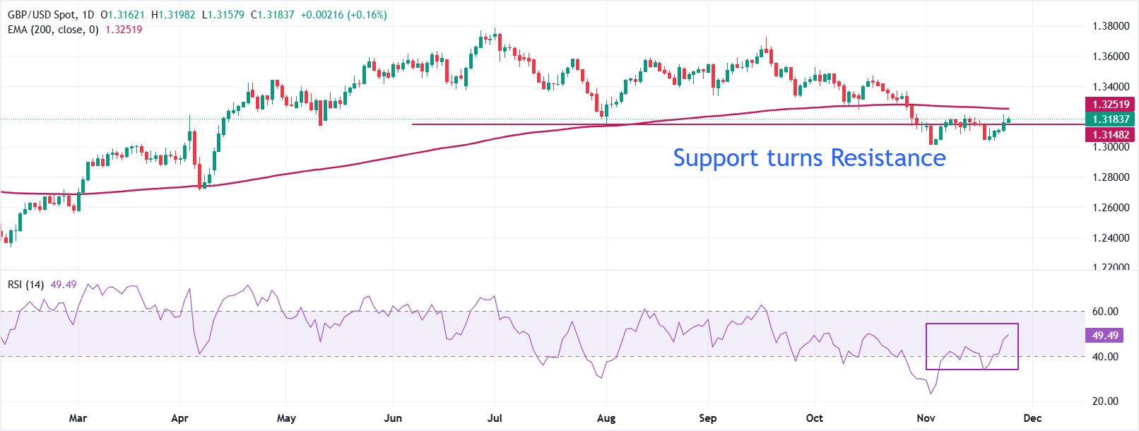 GBP/USD, Birleşik Krallık Sonbahar Bütçesi öncesinde 1,3200'ün altında kenarda kalmaya devam ediyor