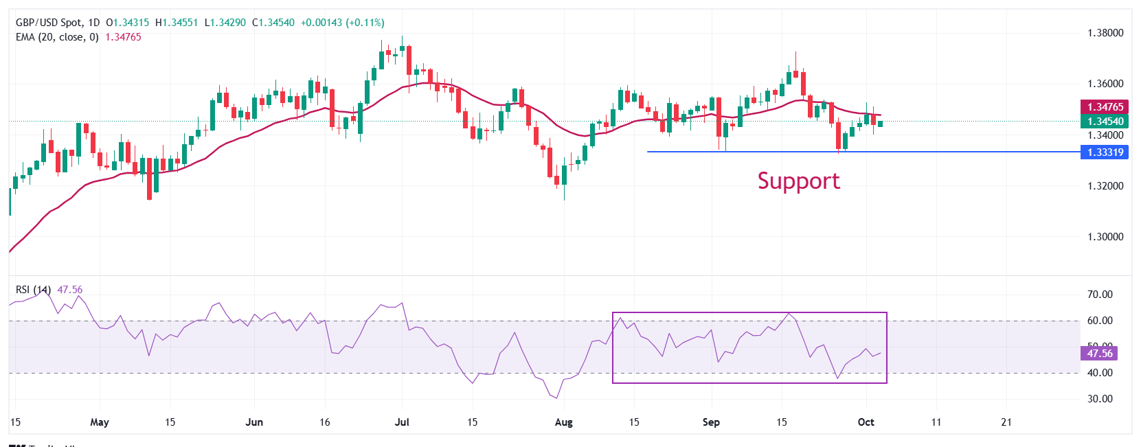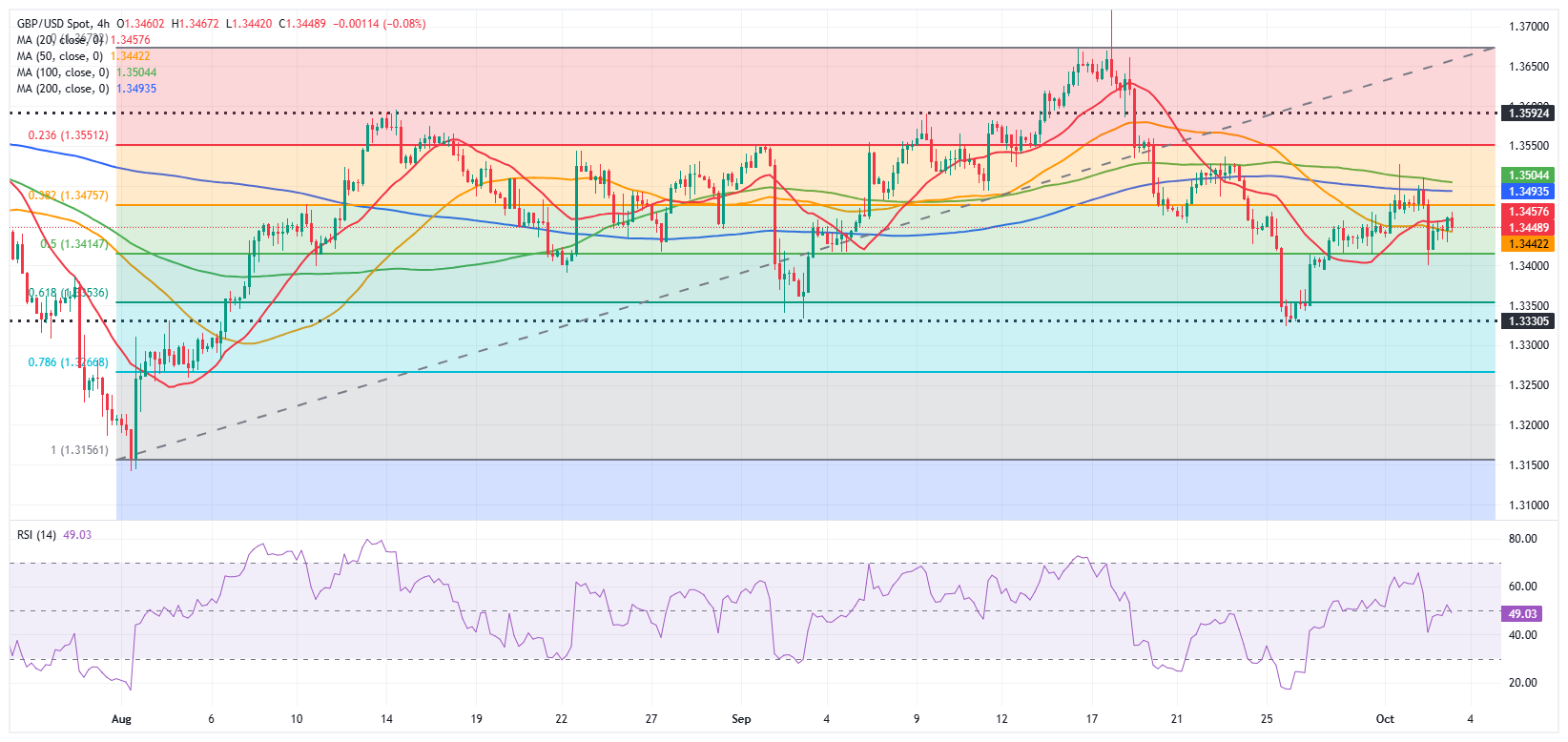 Cuma günü %0,3 kaybederek dört günlük kazanç serisini sonlandırdıktan sonra, GBP/USD paritesi Avrupa seansında 1,3450 civarında sabit kalıyor. Paritenin teknik görünümü, piyasa odak noktası Eylül ayı için Tedarik Yönetimi Enstitüsü'nün (ISM) Hizmetler Satın Alma Yöneticileri Endeksi (PMI) verilerine kayarken, yükseliş momentumunun kaybolduğunu gösteriyor.