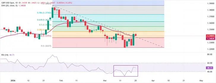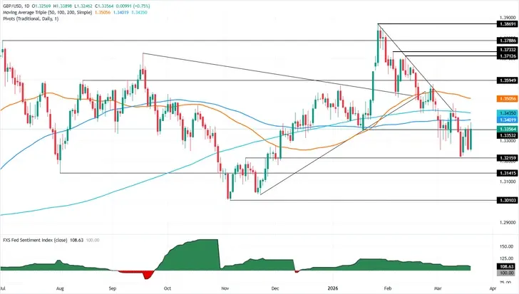GBP/USD, İngiltere Merkez Bankası'nın (BoE) faiz oranlarını değiştirmemesi ve Orta Doğu savaşının tetiklediği yüksek enflasyon baskılarına işaret etmesinin ardından perşembe günü Kuzey Amerika seansında yükseldi. Bu satırların yazıldığı sırada parite 1,3356 seviyesinde, %0,76 artışla işlem görüyor.