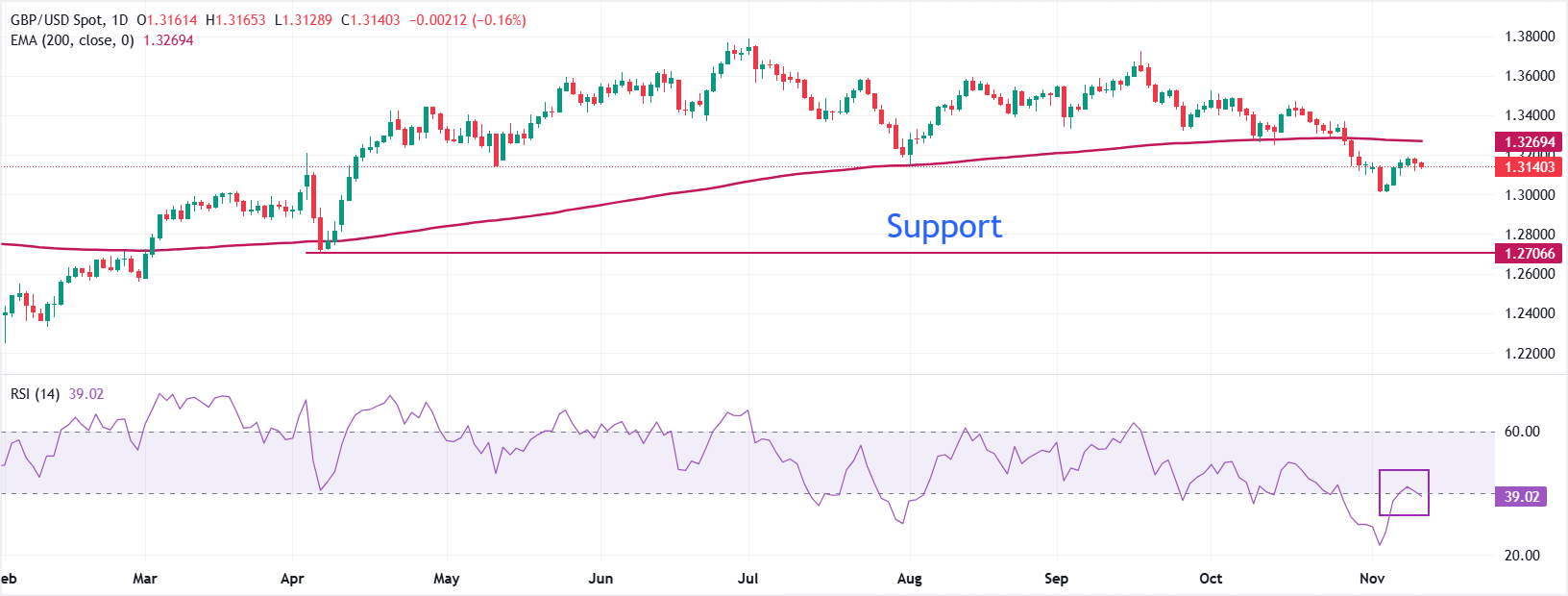Teknik Analiz: İngiliz Sterlini 1,3100 seviyesinin altında daha fazla düşüş görüyor