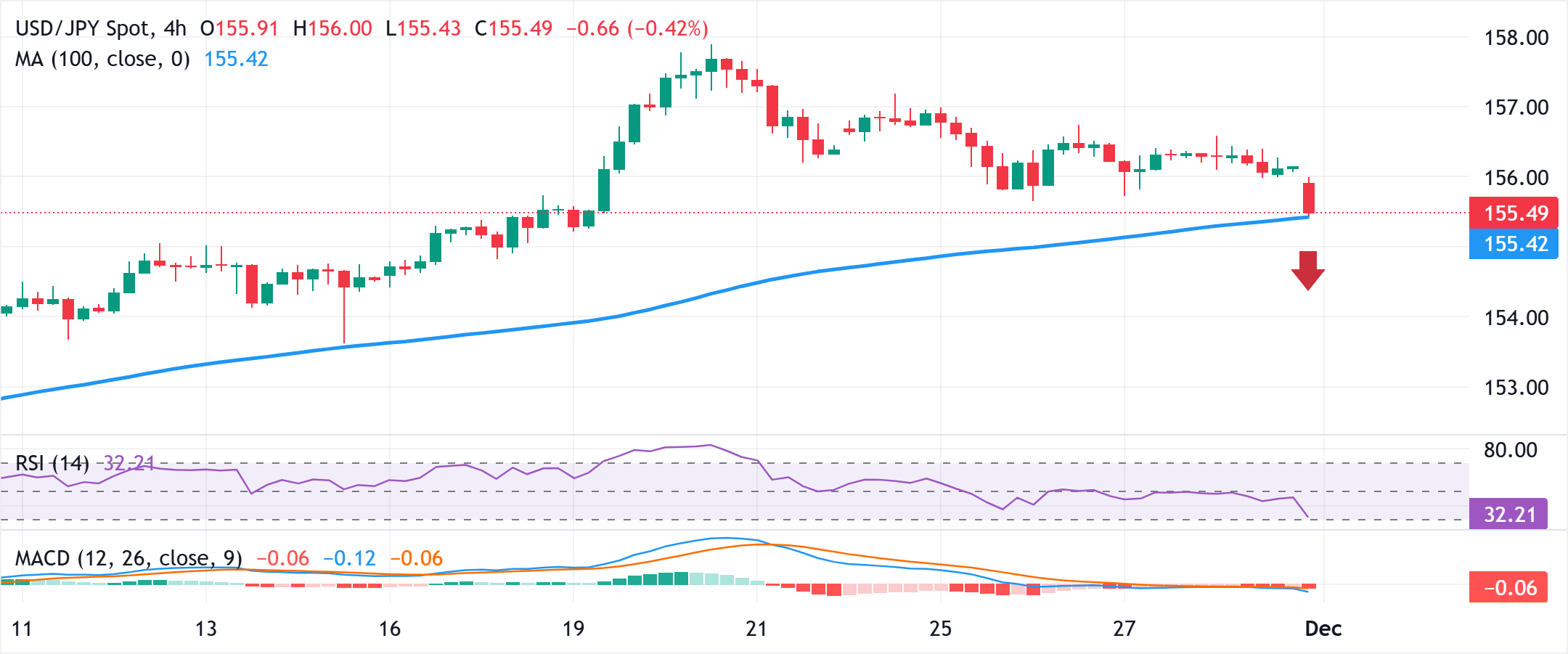 USD/JPY, 155.40-155.35 kavuşum desteğinin altına düşüşü hızlandırabilir