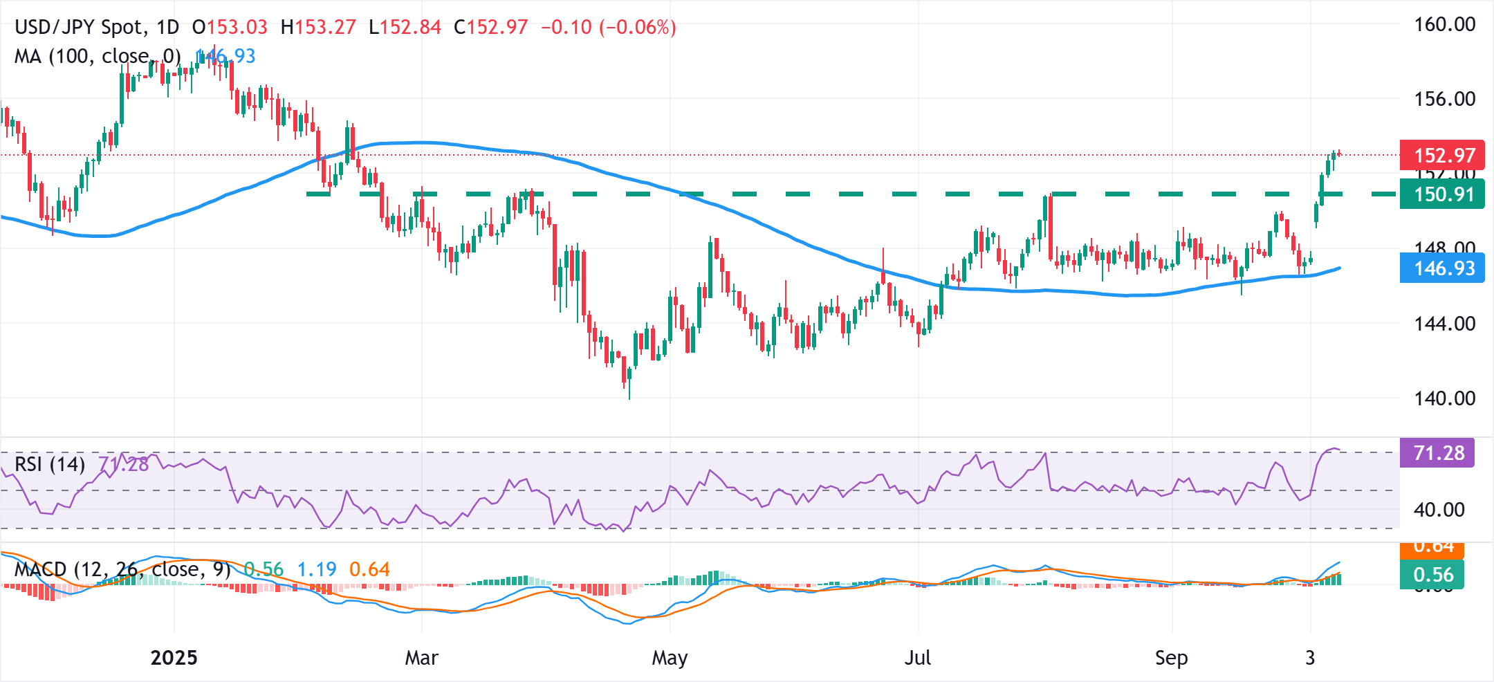 USD/JPY alıcıları, 152,00 yatay direnç kırılma noktasının üzerinde avantajlı durumda