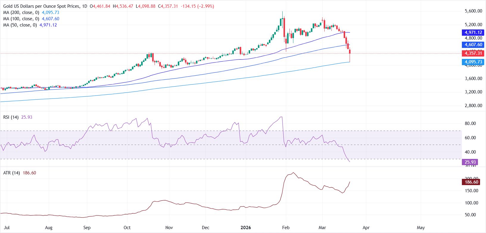 Yazım sırasında, XAU/USD Asya seansında kısa süreliğine 4.100 doların altına inerek Kasım 2025'ten bu yana en düşük seviyesi olan bu seviyenin ardından yaklaşık 4.350 dolar civarında işlem görüyor.