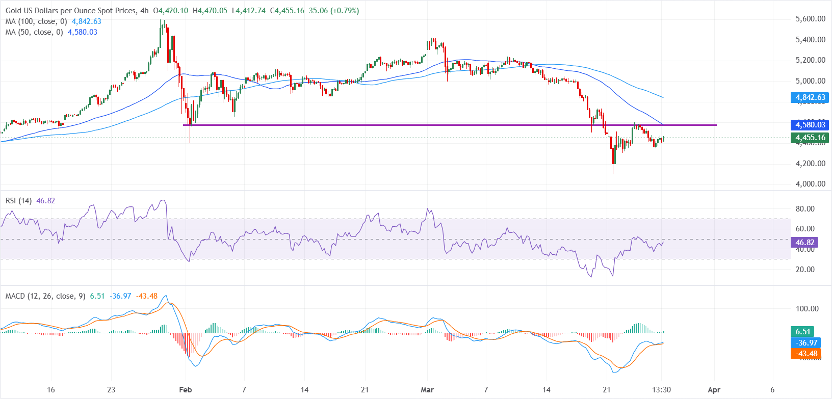 Teknik açıdan, XAU/USD bu hafta başında 4.100$ civarında dört aylık dip seviyelere kısa süreliğine geriledikten sonra erken stabilizasyon işaretleri gösteriyor. Ancak kısa vadeli görünüm aşağı yönlü eğilimde kalmaya devam ediyor; fiyat saatlik ve günlük grafiklerde kritik hareketli ortalamaların altında işlem görüyor.