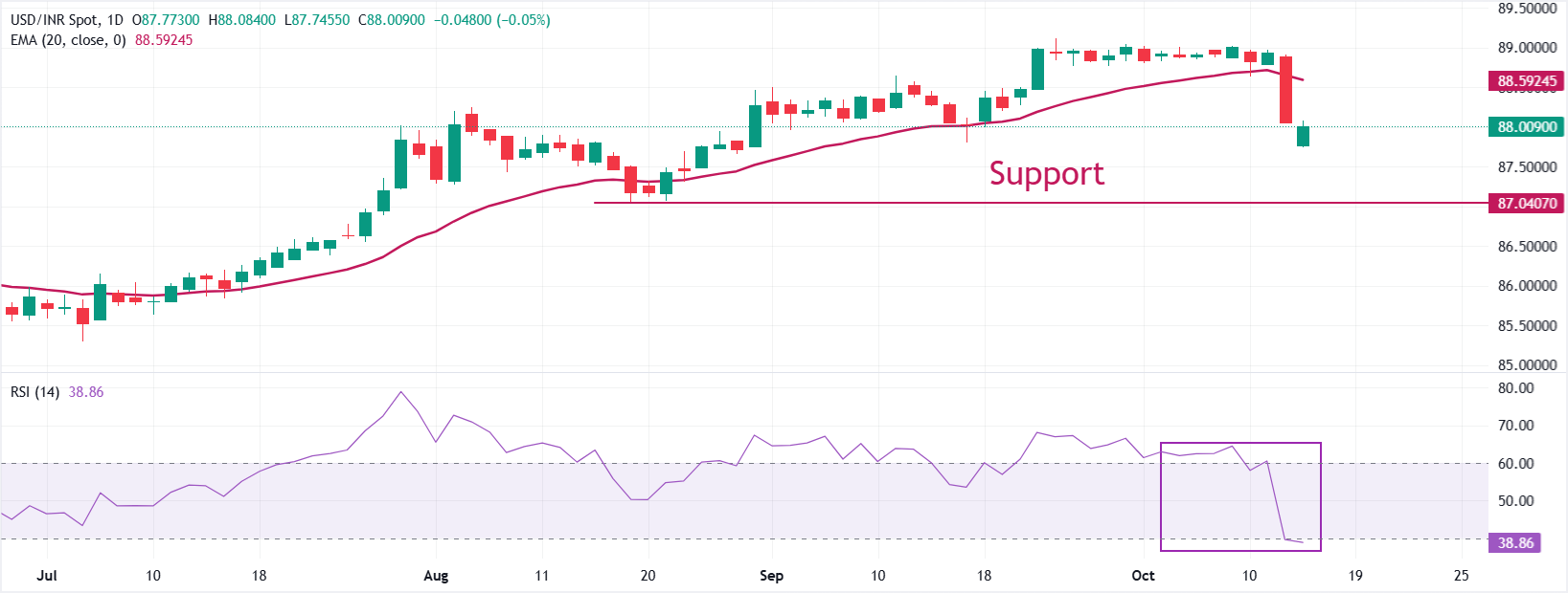 Teknik Analiz: USD/INR 20 günlük EMA'nın altında kalıyor