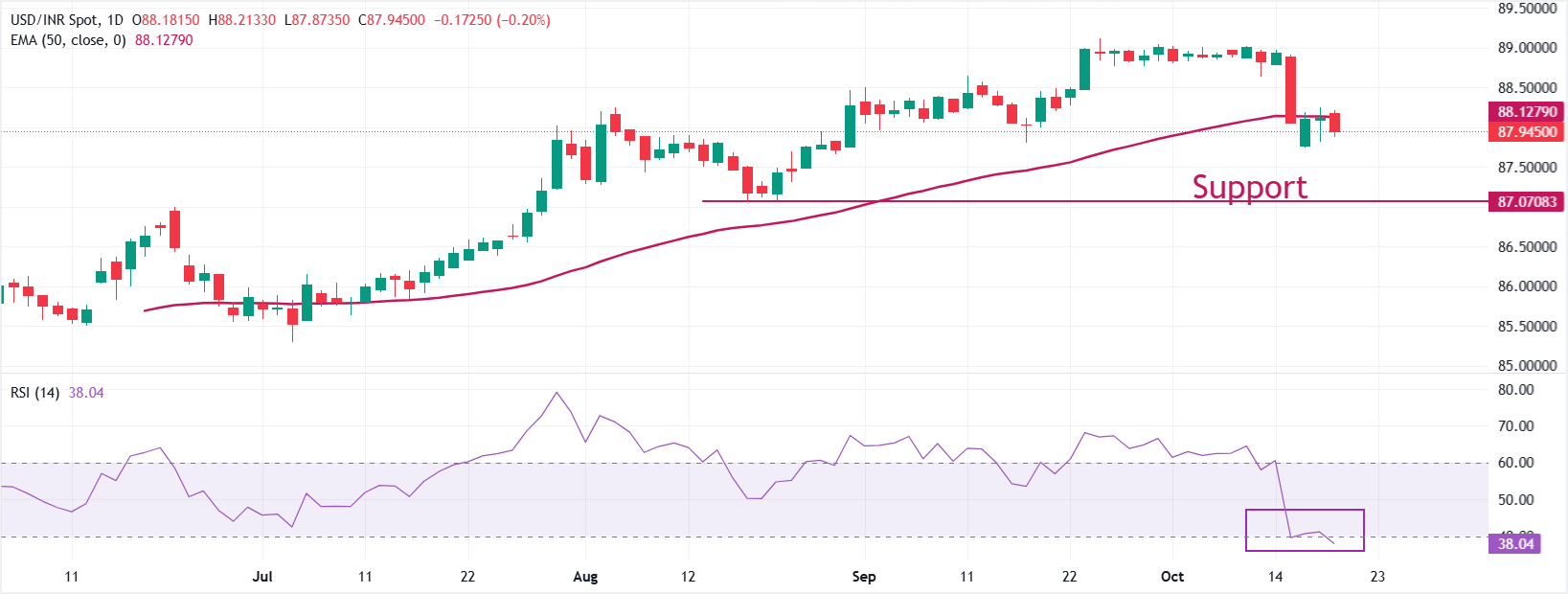 Teknik Analiz: USD/INR, 50 günlük EMA civarında baskı altında