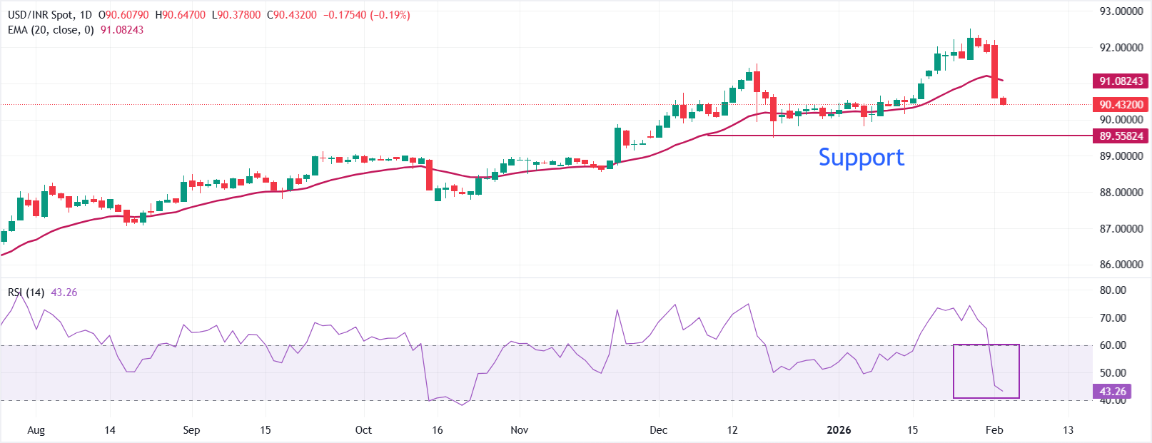 Teknik Analiz: USD/INR 90,00'ın altında önemli destek görüyor