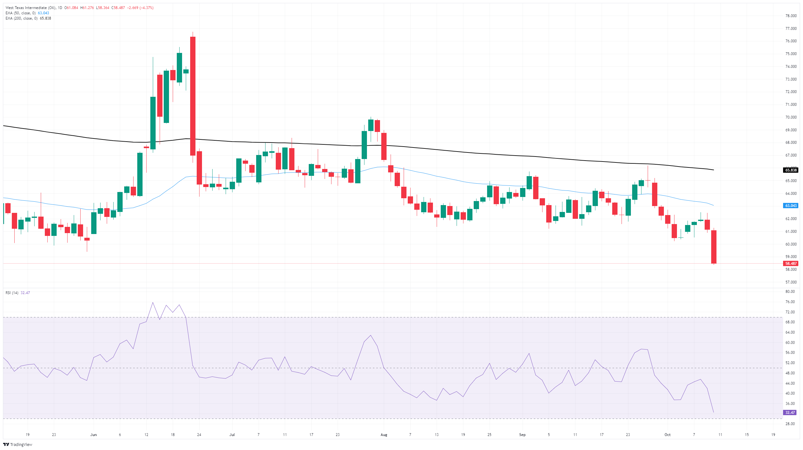 West Texas Intermediate (WTI) ABD Ham Petrol fiyatları, Cuma günü varil başına 60,00$'ın altına çökerek, Haziran'daki keskin geri çekilmeden bu yana en kötü tek günlük performansını sergileyerek %4'ten fazla düştü. ABD ile Çin arasında gümrük tarifelerinin düşürülmesi umudu, aksi takdirde sıradan geçen bir haftayı sona erdirdi ve uzayan ABD hükümet kapatması sırasında zaten zayıf olan yatırımcı duyarlılığını daha da kötüleştirdi.