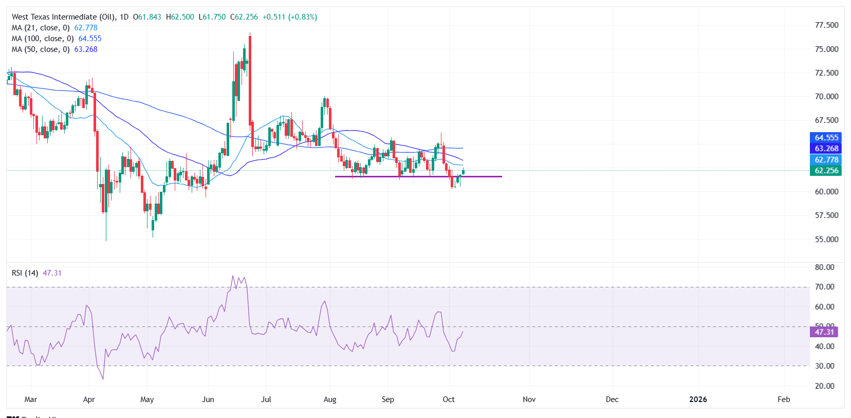 Yazının yazıldığı sırada, ABD benchmark'ı varil başına 62,25$ civarında işlem görüyor ve gün içinde neredeyse %0,80 artış kaydederek geçen haftanın 60,00$ civarındaki dört aylık en düşük seviyesinden toparlanmaya katkıda bulunuyor.